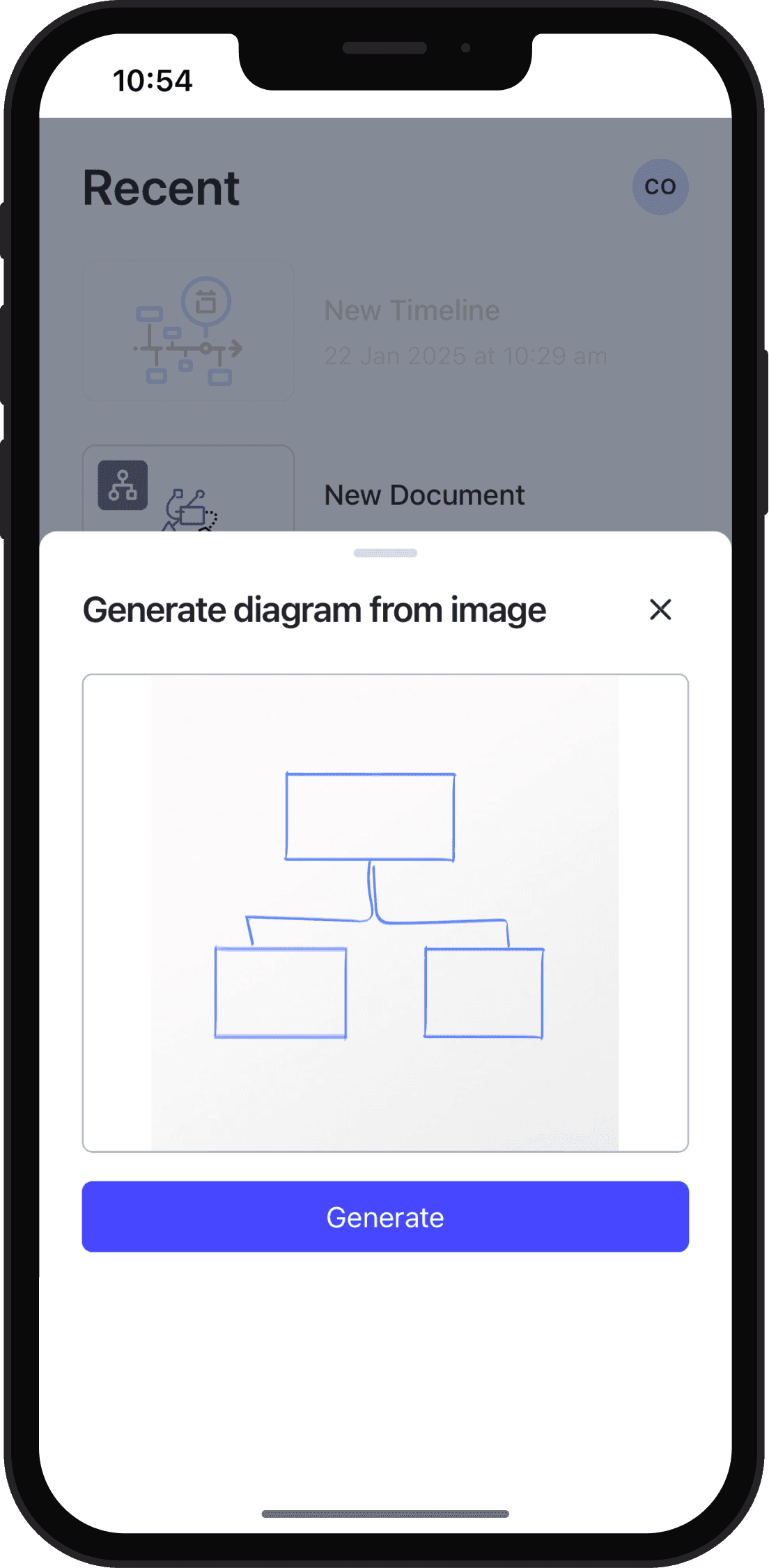 Create professional diagrams from your phone or tablet. Convert sketches, text, or images into polished visuals on the go—in client meetings, between offices, or working remotely.